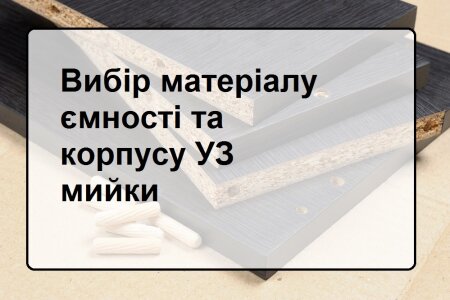 Внутрішня ємність ультразвукової ванни повинна бути виготовлена лише з нержавіючої сталі. Використання інших матеріалів недоцільно і не застосовується практично. Корпус мийки виготовляють, як правило, так само з нержавіючої сталі. Однак з метою здешевлення конструкції можна застосувати чорну сталь. Для маленьких мийок люблять використовувати дерево та його похідні як матеріал корпусу. Це не так, тому що через 1-2 рази використання ванни дерево (мдф, ДСП, ОСБ та інші матеріали) втратять товарний вигляд і конструкційну міцність. Кращий матеріал – нержавіюча сталь.