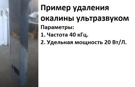 Окаліна може бути ефективно видалена ультразвуком. Частота обробки залежить від шорсткості поверхні. В основному застосовують двостадійну обробку на частотах 25 кГц і 40 кГц. Це поєднання частот дає максимальну ефективність та кращу якість чищення.